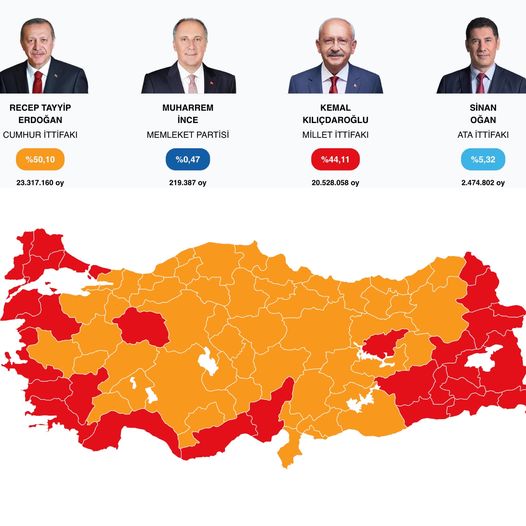 90 százalékos feldolgozottságnál is 50 százalék felett vezet Recep Tayyip Erdoğan, Törökország nagyobb része narancssárga. Amint látni a véglegesnek számító eredményt, azonnal jelentkezem!