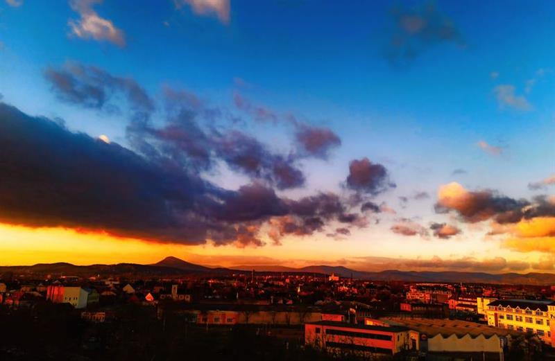 A napnyugta előtti pillanatban látható égbolt Budapesten.