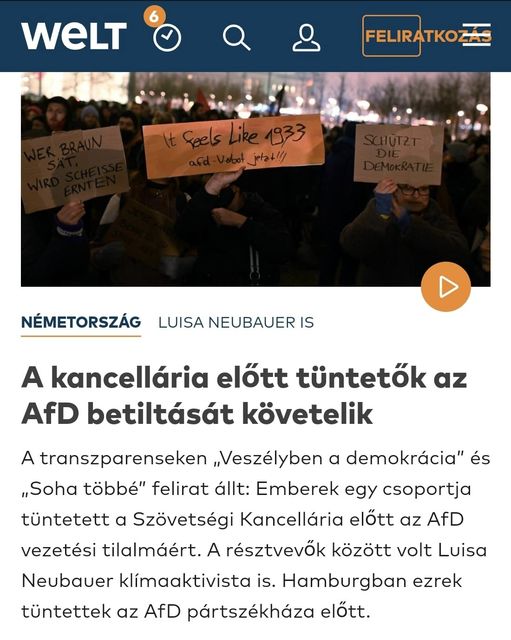 Németországban a "zöld és civil" aktivisták az AfD betiltását követeli