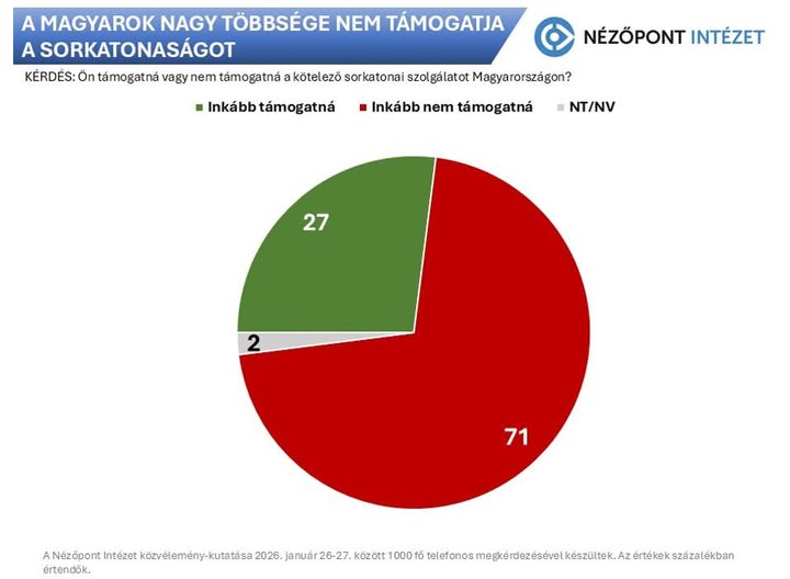 A választók 71 százaléka nem támogatná a kötelező sorkatonai szolgálatot Magyarországon – derül ki a Nézőpont Intézet legfrissebb közvélemény-…