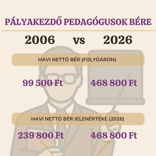 Pedagógusbér-felzárkóztatás 2006–2026: húsz év, közel dupla reálbér