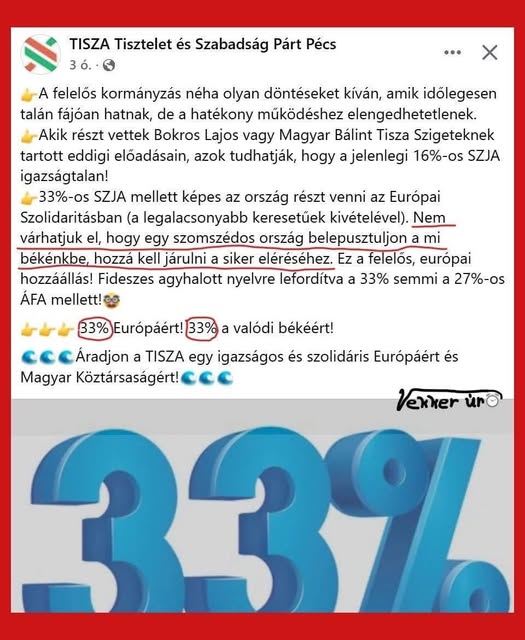 Tisza Párt: azért kell 33%-ra emelni az SZJA-t, hogy Ukrajnába küldjék a magyarok pénzét…