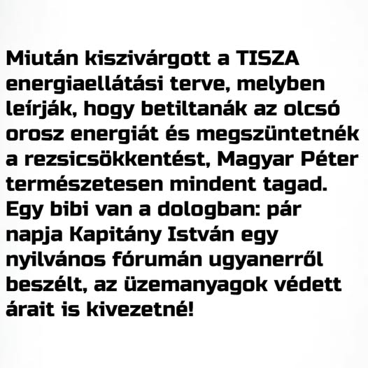☝️Miután Kapitány István egy nyilvános fórumon elszólta magát, most kiszivárgott a TISZA energiaellátási terve. Ebben az szerepel többek között, hogy leválnának az olcsó orosz olajról, eltörölnék a…