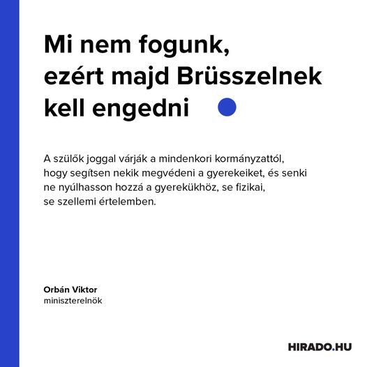 Bővebben: https://hirado.hu/belfold/cikk/2023/03/11/orban-viktor-magyarorszag-nem-fog-engedni-brusszelnek-a-gyermekvedelem-ugyeben/ Nagyon nézem... Forrást nézem, kedvelem ott