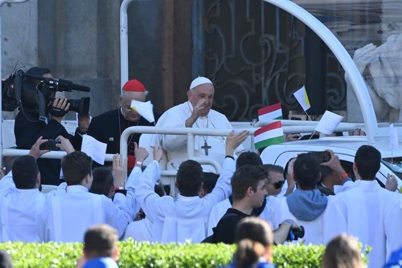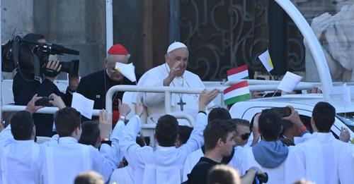 Megérkezett Ferenc pápa a Kossuth térre.