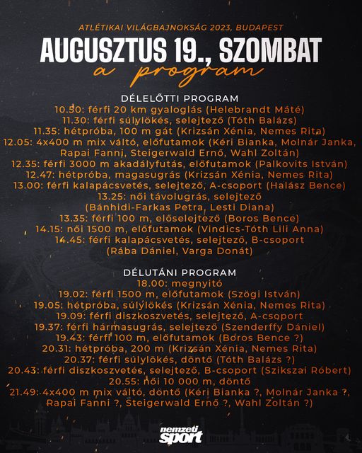 Indul a budapesti atlétikai világbajnokság – íme, az első nap programja! Nagyon nézem... Forrást nézem, kedvelem ott