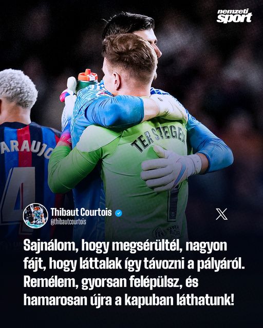 Amikor a rivalizálás másodlagos: a Real Madrid kapusa jobbulást kívánt a súlyos sérülést szenvedő barcelonai kollégájának.