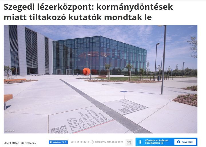 ️ Ebben a 2019-es cikkben a "méltán" szakmai és "objektív" Index azon siránkozik, hogy miért is kapott egy neve nincs kutatóközpont és lézer projekt az államtól rendeleti úton 20 milliárd forint…
