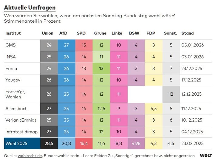 Az AfD az egyik legújabb közvéleménykutatás szerint már 3 százalékponttal előzi a CDU-t. Ráadásul a legkülönfélébb közvélemény-kutató cégek mérései mind ezirányba mutatnak.