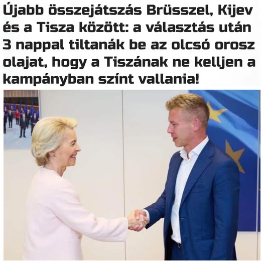 ️Az Európai Bizottság április 15-én, tehát három nappal a magyar parlamenti választások után jogi javaslatot nyújt be az olcsó orosz olajimport végleges betiltásáról — ez egy újabb bizonyíték a Tisza,…