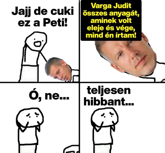 Magyar Péter sajnos fullba tolja a hibbantat. Kommentben bizonygatta kényszeresen, hogy Varga Judit sikere mögött mindvégig csakis ő állt. Aszondta még Judit Facebook oldala is csak miatta lett nagy…