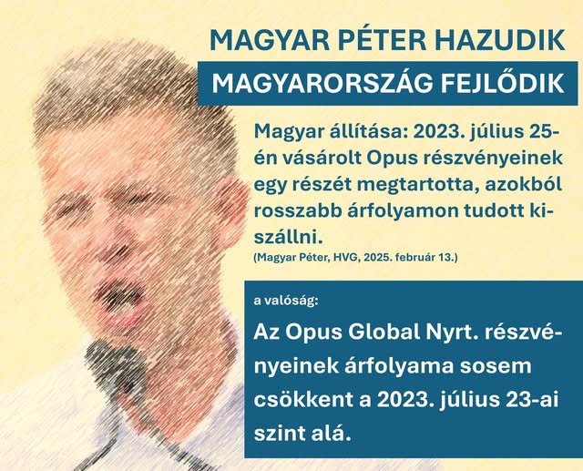 Magyar Péter állítása: 2023. július 25-én vásárolt Opus részvényeinek egy részét megtartotta, azokból rosszabb árfolyamon tudott kiszállni. (Magyar Péter,…