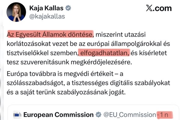 ️ Kaja Kallas aki korlátozni akarja az orosz hadsereg létszámát fel van háborodva az USA döntésén, hogy korlátozza a vízumokat miközben, ő is korlátozni akarta az oroszokat. A kettős mérce…