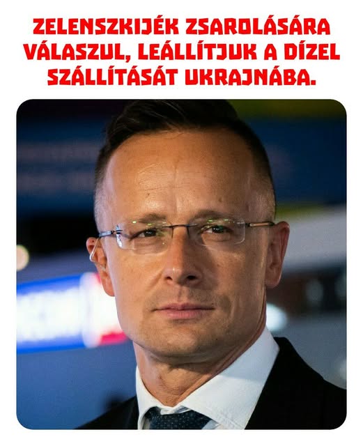 ️ Szijjártó Péter: Zelenszkijék zsarolására válaszul, leállítjuk a dízel szállítását Ukrajnába.
