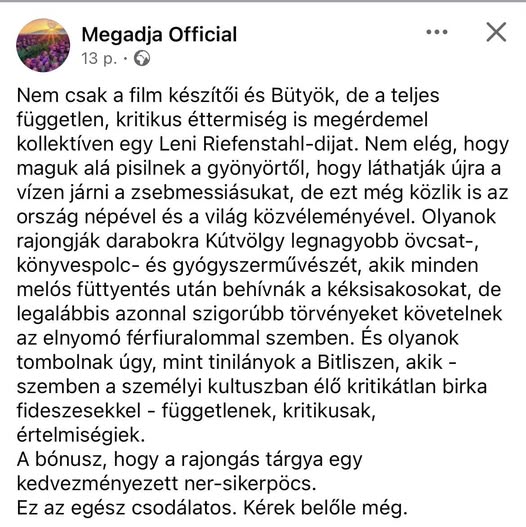 Engedjetek meg nekem egy vendégszöveget. Megadja Gábor, nagyon helyesen, azon az állásponton van,hogy néha jobb kinevetni a gonoszt, mint hosszasan és unalmasan kielemezni a művét.
