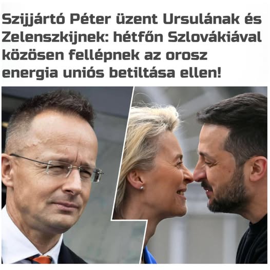 Szijjártó Péter közölte: az energiaügyi tanács hétfői ülésén Magyarország a szlovákokkal közösen fog fellépni az Ursula Von der Leyen-Zelenszkij terv ellen.
