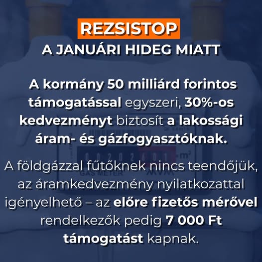A januári gáz- vagy áramfogyasztás után 30 százalékos mennyiségi, a távfűtésben 30 százalékos árkedvezményt adunk a háztartásoknak. A kedvezmény automatikusan megjelenik a földgáz- és távhőszámlákban.…
