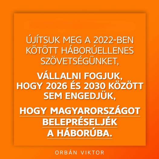 Orbán Viktor: Vállalni fogjuk, hogy 2026 és 2030 között sem engedjük, hogy Magyarországot belepréseljék a háborúba.