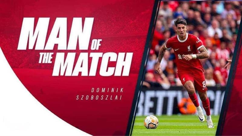 👏 Szoboszlai Dominkot választották meg a meccs legjobbjának a Liverpool mai, 3:1-es győzelme után! Ez az első meccse az Anfield Roadon! Le a kalappal!