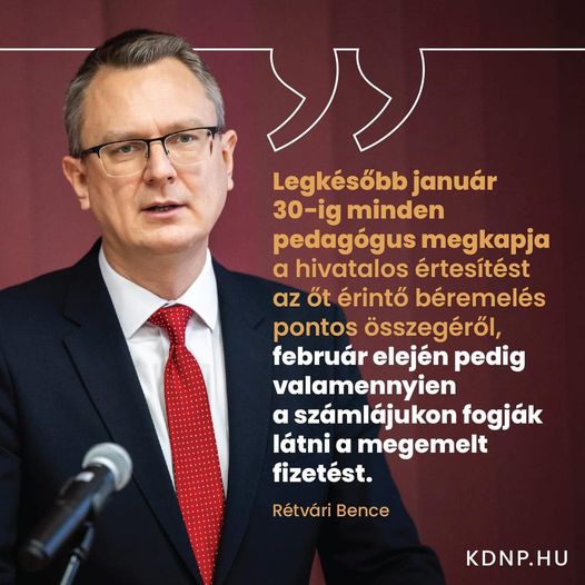 ️ Átlagosan 32%-kal emelkedik a tanárok és óvónők bére januártól.