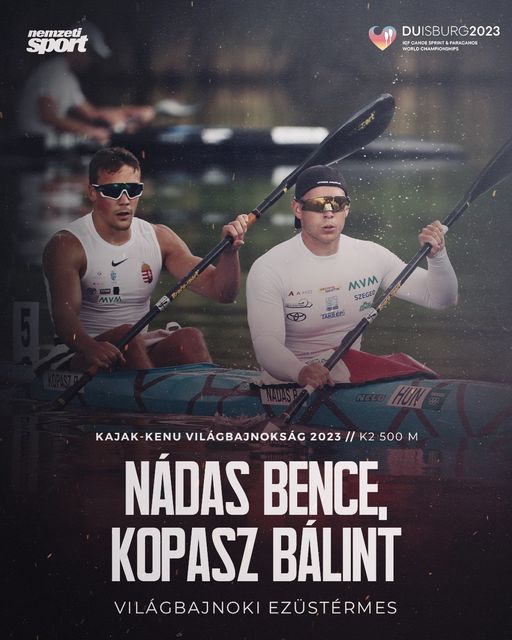 A Nádas Bence, Kopasz Bálint kettős ezüstérmes 500 méteren a Duisburgban zajló kajak-kenu vb-n! 👏