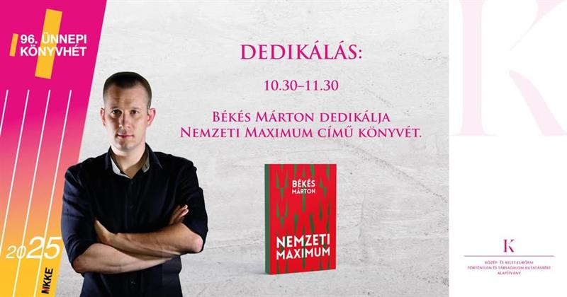 Könyvheti beszélgetés Békés Márton: Nemzeti maximum című könyvéről a Vörösmarty téri színpadon és dedikálás a Vigadó tér, Duna-korzó felőli részén, a 16-os pavilonnál!