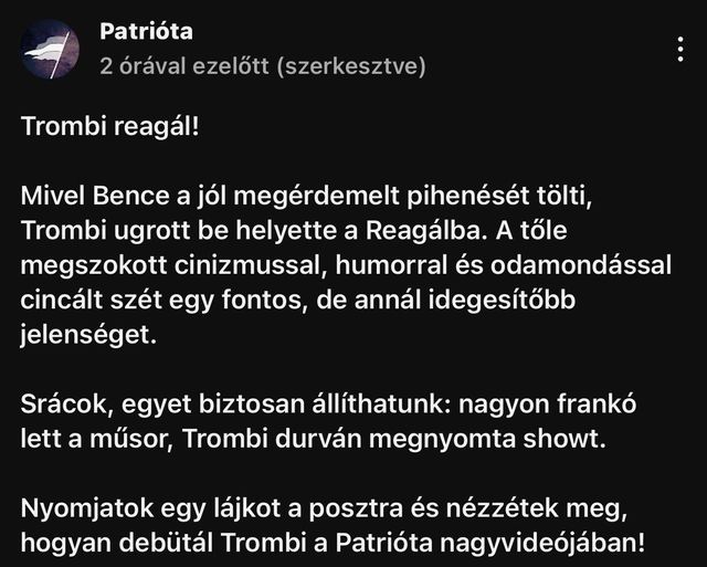 holnap jövünk a Patrióta-‘tube-on!