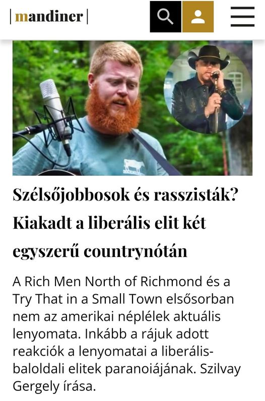 Jason Aldean és Oliver Anthony Musicírt egy-egy számot, ami hirtelen lett gigasláger, a balos elitek meg kiakadtak rajtuk. Az egyik a kisvárosi összetartásról szól, ahol nem lehet nagyvárosi módon…
