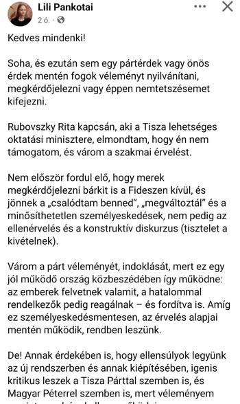 Pankotai Lili, az épp Orbánék által alapított NKE diákja, akit a tiszásokkal ellentétben senki nem hatalmazott fel semmire, azaz nincs demokratikus felhatalmazása, szerinte az "emberek véleményét"…