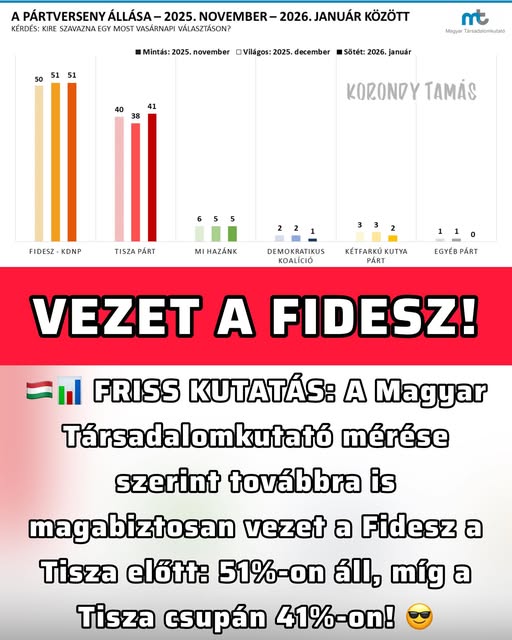 ️Az aktív szavazó pártválasztók 51 százaléka a Fidesz–KDNP-t támogatja, így a kormánypártok továbbra is magabiztosan vezetik a pártversenyt. A Tisza Párt (41 százalék) támogatottsága kismértékben…