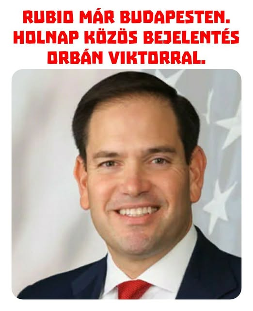 ️ Marco Rubio amerikai külügyminiszter már Budapesten. Holnap közös bejelentés Orbán Viktorral.