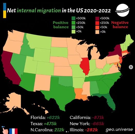 Az alábbi térképen az látható, hogy az egyes amerikai államokban, hogyan változott a vándorlási egyenleg 2020-22 között. Jól látszik,…