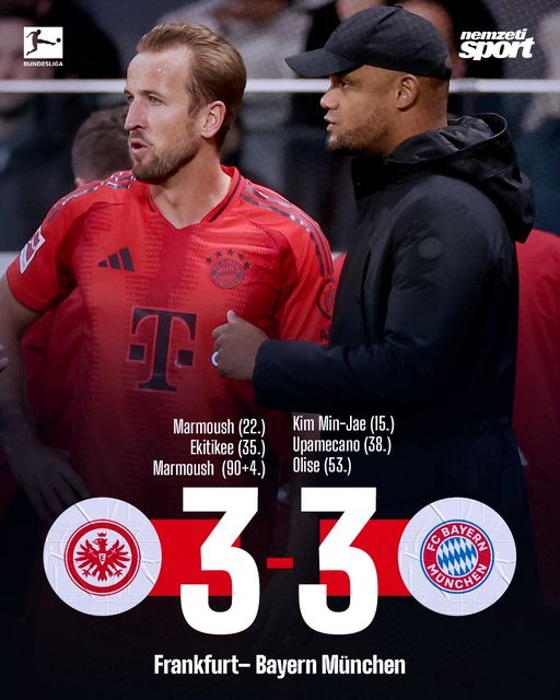 A végén egyenlített a Frankfurt, hatgólos meccsen ikszelt a Bayern Münhennel.