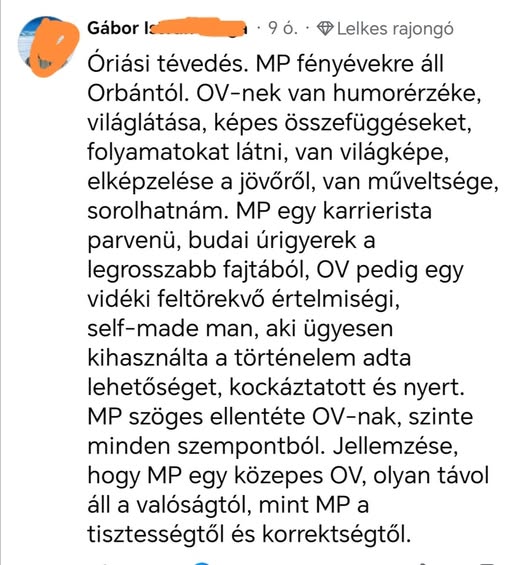 Gábor ezt írta arra, hogy valaki szerint Magyar Péter ha jó formában van egy közepes Orbán Viktor másolat.