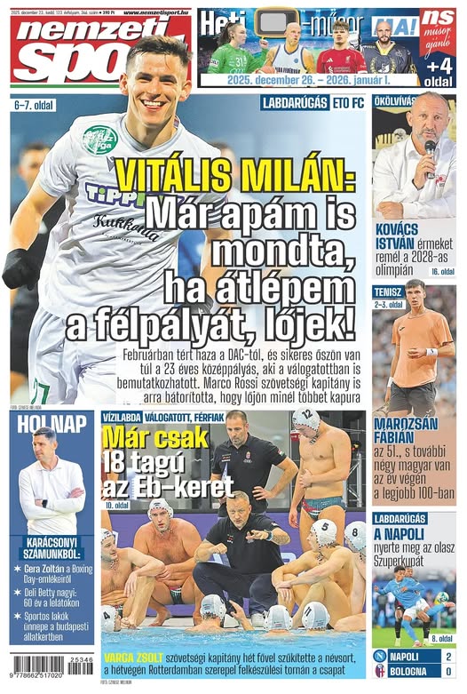 Vitális Milán: Már apám is mondta, ha átlépem a félpályát, lőjek!; Jóból és rosszból is kijutott a magyar tenisznek 2025-ben – a Nemzeti Sport keddi számából ajánljuk!