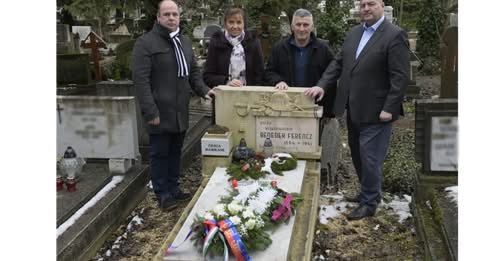 Ez alkalomból a kék-piros és nemzeti színekkel díszített koszorút Légrádi Gábor kommunikációs igazgató és Németh Szilárd, a Magyar…