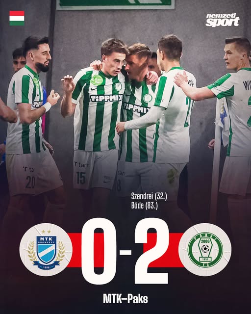 Szendrei és Böde is betalált, a Paks két góllal nyert az MTK otthonában. 👏🟢