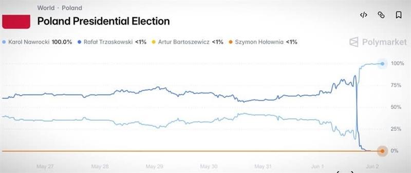 A Polimarket nem is olyan régen így produkált a lengyel elnök választásnál. Fogadjunk, hogy itt is így lesz holnap.