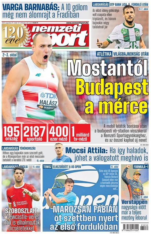 Atlétikai vb: mostantól Budapest a mérce; Varga Barnabás: 10 gól? Az nem álomrajt… – a keddi Nemzeti Sportból ajánljuk: https://bit.ly/45qvAMX
