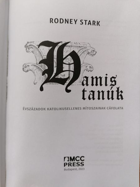 Kíváncsi vagyok, a Lakmusz mikor ír Rodney Stark protestáns vallásszociológus magyarul nemrég megjelent művéről, mint a katolikusellenes történelmi álhírek cáfolatáról.