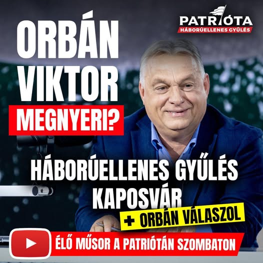 ️Trump, Davos és Brüsszel után Kaposvár! Orbán Viktor és a jobboldal ma is Háborúellenes gyűlést tart, és az elmúlt napok háborúpárti nyugati fejleményeit látva ezekre a gyűlésekre nagyobb szükség van…