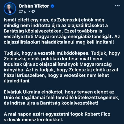 ️Zelenszkij retteghet! Orbán Viktor Robert Ficoval egyeztet a további válaszlépésekről, miután Ukrajna zsarolja Magyarországot és Szlovákiát!