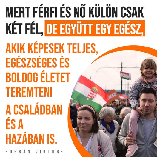 Mert csak a férfi és nő együtt képesek teljes, egészséges és boldog életet teremteni a családban és a hazában is.