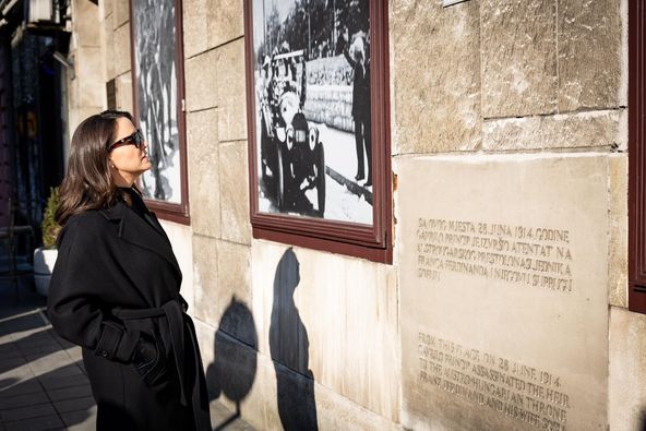 Szarajevó, 1914. június 28. Itt követett el merényletet Gavrilo Princip az Osztrák-Magyar Monarchia trónörököse, Ferenc Ferdinánd főherceg és felesége, Zsófia főhercegné ellen.