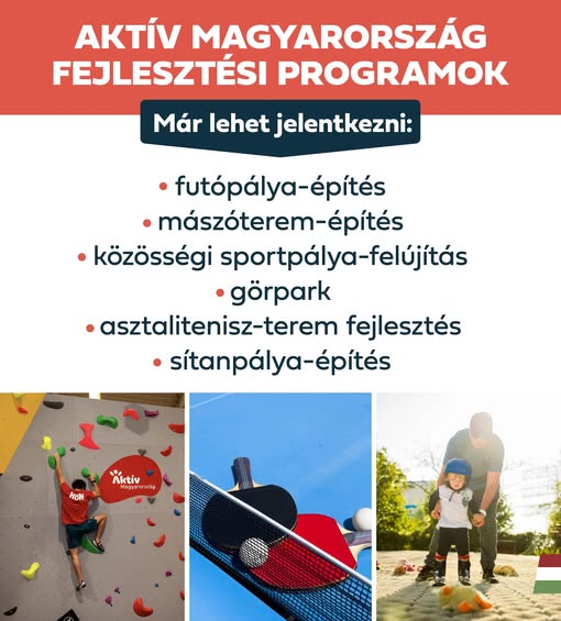 Az aktív életmódot és kikapcsolódást támogató programokra főként önkormányzatok, illetve a településeken működő szervezetek jelentkezhetnek. Részletek: aktivmagyarorszag.hu/felhivasok