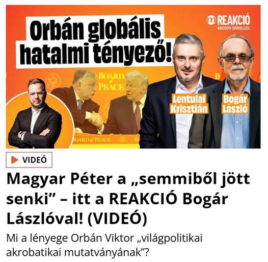 Az aktuális világpolitikai átrendeződések, az Egyesült Államok nagyhatalmi törekvései, Orbán Viktor globális léptékű szerepe, de Magyar Péter „semmiből jött” személyisége is előkerült a Reakció friss…