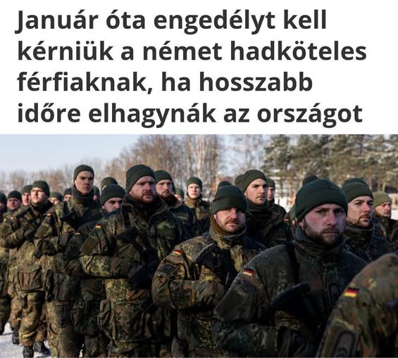 ️ Háborúra készülnek nyugaton? Ez a helyzet Németországban. Január 1. óta minden 17 és 45 év közötti férfinak engedélyt kell kérnie a Bundeswehr Karrierközponttól, ha három hónapnál hosszabb időre el…