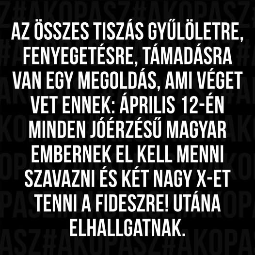 A csendes többség vasárnap két nagy X-et tesz a fideszre és véget vetünk a tiszás terrornak! Most mi jövünk!