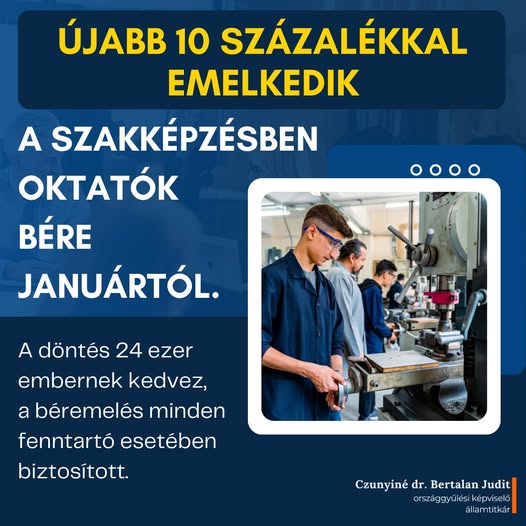 Folytatódik a szakképzésben oktatók bérfejlesztése, 2020 óta jövőre már az ötödik körrel. 30 százalékkal kezdődött, 15 százalékkal, 32 százalékkal, 21 százalékkal folytatódott, most pedig újabb 10…