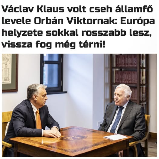 Václav Klaus, a Cseh Köztársaság volt államfőjének, miniszterelnökének Orbán Viktor miniszterelnöknek címzett levele: